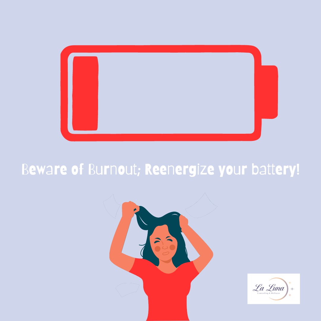 Remember that you are NOT alone; feeling overwhelmed or burnt out can happen. Prioritize you and do not feel guilty or selfish about doing so. You can not provide for your friends and family if you are not you! La Luna is always here to help you if you need it!